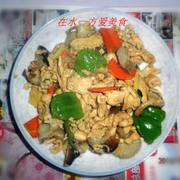 鸡肉、香菇、青椒、胡萝卜、大蒜、姜、鸡精、盐、海天味极鲜酱油。