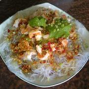 鲜虾仁、粉丝、酱油、蒜末、红辣椒、食用油、姜末。