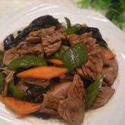 猪腰、胡萝卜、青椒、黑木耳、盐、水淀粉、老抽、葱、姜、料酒、植物油、鸡精。
