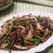 鳝丝、洋葱、辣椒、生姜、葱、色拉油、生抽、糖、胡椒粉。
