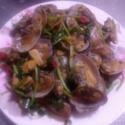 花蛤、青辣椒、红辣椒、香菜、大蒜。