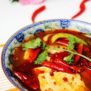 豆腐、青菜、香菜、食用油、盐、生抽、老抽、十三香、花椒粉、红油豆瓣酱、辣椒粉、花椒粒、干辣椒、鸡汤、蒜丁、美极鲜。