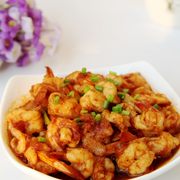 虾、番茄、食用油、盐、料酒、胡椒粉、生抽、蒜头、葱白、姜丝。