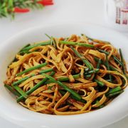 豆腐皮、韭苔、辣酱、食用油、生抽、孜然粉、姜丝。