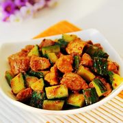 猪里脊肉、黄瓜、食用油、盐、生抽、老抽、料酒、香辣酱、番茄酱、胡椒粉、淀粉、美极鲜。