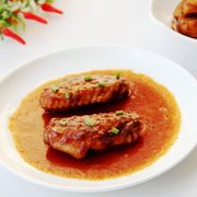 鸭掌、泡发香菇、食用油、盐、生抽、老抽、料酒、甜辣酱、冰糖、桂皮、八角、姜、干辣椒。