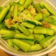 黄瓜、香油、蒜、鸡精、盐、生抽、香醋、白砂糖。