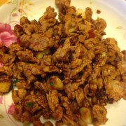 鸡胸脯肉、花生、六必居甜面酱、鸡精、鸡蛋清、料酒、生抽、姜片、蒜片。
