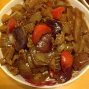 牛里脊、洋葱、红柿子椒、生抽、老抽、姜、玉米淀粉、鸡精、蒜片。