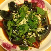 松花蛋、香葱、香菜、蒜蓉、香醋、酱油、鸡精。
