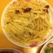 土豆、干辣椒、盐、姜丝、蒜片、孜然、花椒、生抽、鸡精。