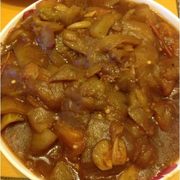 圆茄子、番茄、盐、玉米淀粉、姜、鸡精、生抽、老抽、蒜片。