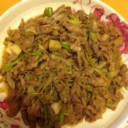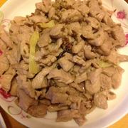 猪肉里脊、料酒、孜然、花椒、鸡精、盐、姜蒜片。