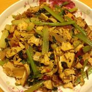 芹菜、豆干、瘦肉、花椒、郫县豆瓣、鸡精、干辣椒、生抽。