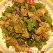 五花肉、青椒、小青椒、生抽、玉米淀粉、鸡精、姜、蒜。