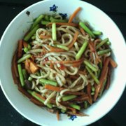 面条、胡萝卜、蒜薹、郫县豆瓣酱。