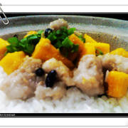 排骨、南瓜、白饭、水、枧水、生粉、食粉、葱粒、水、盐、味精、糖、酸梅酱、炸蒜茸、香油、麻油。
