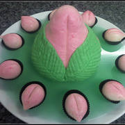 面粉、酵母、泡打粉、糖、白奶油、水、豆沙、食用红色素、食用青色素。