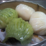 去壳鲜虾、竹荀丝、食粉、枧水、生粉、水、盐、味粉、糖、香油、猪油、生粉、胡椒粉、汀面、生粉、白奶油、菠菜。
