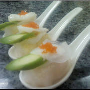 带子、蟹子、芦笋、生粉、清水、沸水、生粉。