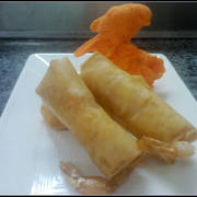 虾饺馅、春卷皮、大洋冲、红罗卜、咖喱粉、尾虾、盐、味粉、糖、生粉、香油。