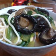 红薯粉、小白菜、香菇、瘦肉、豆芽菜、葱、姜、盐、鸡精、生抽、胡椒粉。