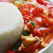 番茄、鸡蛋、米饭、葱、盐、鸡精、水淀粉。