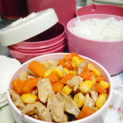 鸡胸肉、玉米、红萝卜、生抽、植物油、盐、豆粉、大蒜。