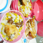 米、鸡肉、青豆、盐、淀粉、生抽、料酒。