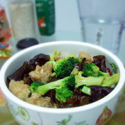 排骨、西兰花、黑木耳、盐、豆粉、酱油。