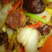 腊肠、娃娃菜、小米椒、虾米、胡萝卜、香菇、葱段。