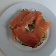 培果、熏鲑鱼、软奶酪、青菜叶、黑胡椒。