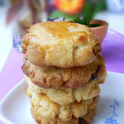 低筋面粉、蔓越莓干、蛋液、黄油、细砂糖。