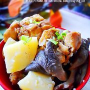 鸡翅根、蘑菇、土豆、葱、姜、油、花椒、大料、酱油、料酒、醋、糖、盐、味精、老抽、白糖。