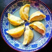 白菜、青椒、猪肉、饺子皮、葱、姜、水、油、酱油、料酒、盐、味精、五香粉。