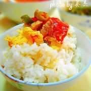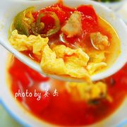 西红柿、猪瘦肉、鸡蛋、葱、尖椒、油、酱油、盐、五香粉。