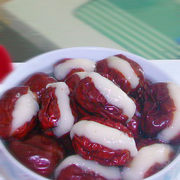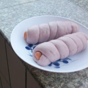 糯米粉、面粉、细砂糖、紫薯泥、枸杞、南瓜泥。