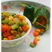 玉米粒、青豆、胡萝卜、黄瓜、盐、鸡粉。
