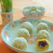 糯米粉、面粉、紫薯泥、椰丝、白糖。