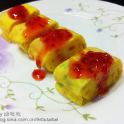 鸡蛋、火腿肠、糖、盐、葱。