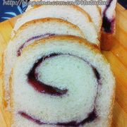 高粉、绵白糖、盐、干酵母、全蛋液、水、黄油、蓝莓果酱。