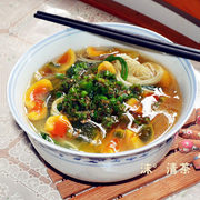 中细棍面条、皮蛋、青椒、空心菜、生抽酱油、芝麻香油、花椒面、熟油辣子、味精、面汤。