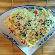 西葫芦、鸡蛋、面粉、黑芝麻、红椒、食用油、盐。