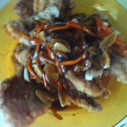 猪里脊、淀粉、胡萝卜、蒜、香菜、姜、糖、生抽、醋、食用油、盐、料酒。