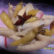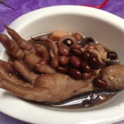 鸡爪、墨鱼、黄豆、黑豆、花生、盐、姜、葱、八角、香叶、桂皮、花椒粒、糖、醋、料酒。