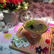 西米、龟苓膏、各种水果、咖啡、蜂蜜。