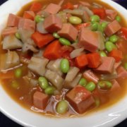 青豆、火腿肠、胡萝卜、藕、蕃茄、史雲生浓醇高汤、糖、淀粉。