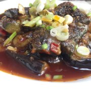 茄子、豆瓣酱、花椒粉、盐、味精、葱花、姜粒、蒜泥、糖、老抽、淀粉。
