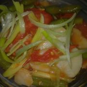 豆角、芋头、蕃茄、姜、蒜、盐、糖。