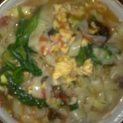 面条、鸡蛋、蕃茄、紫菜、虾皮、菠菜、盐、糖、葱、芹菜、姜。